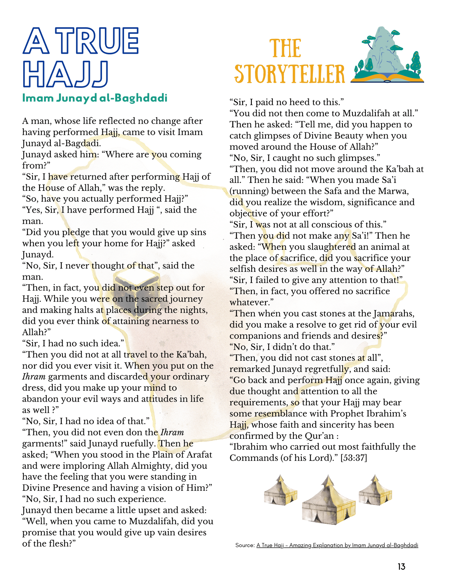 - The Storyteller - A True Hajj, by Imam Junayd Al-Baghdadi.